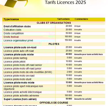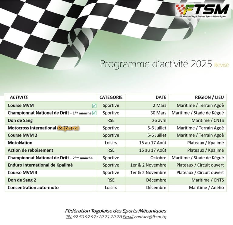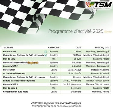 Partenaires 2025 de la Fédération Togolaise des Sports Mécaniques