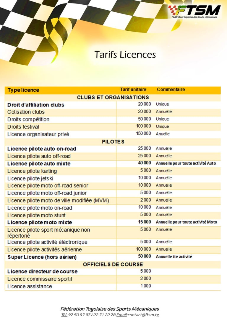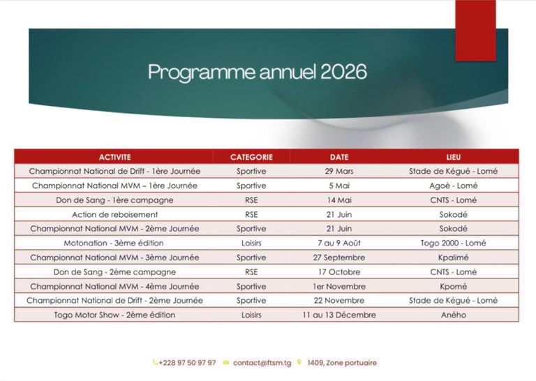 Partenaires 2025 de la Fédération Togolaise des Sports Mécaniques